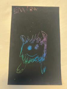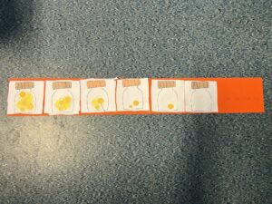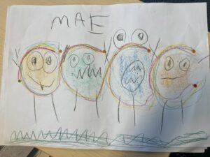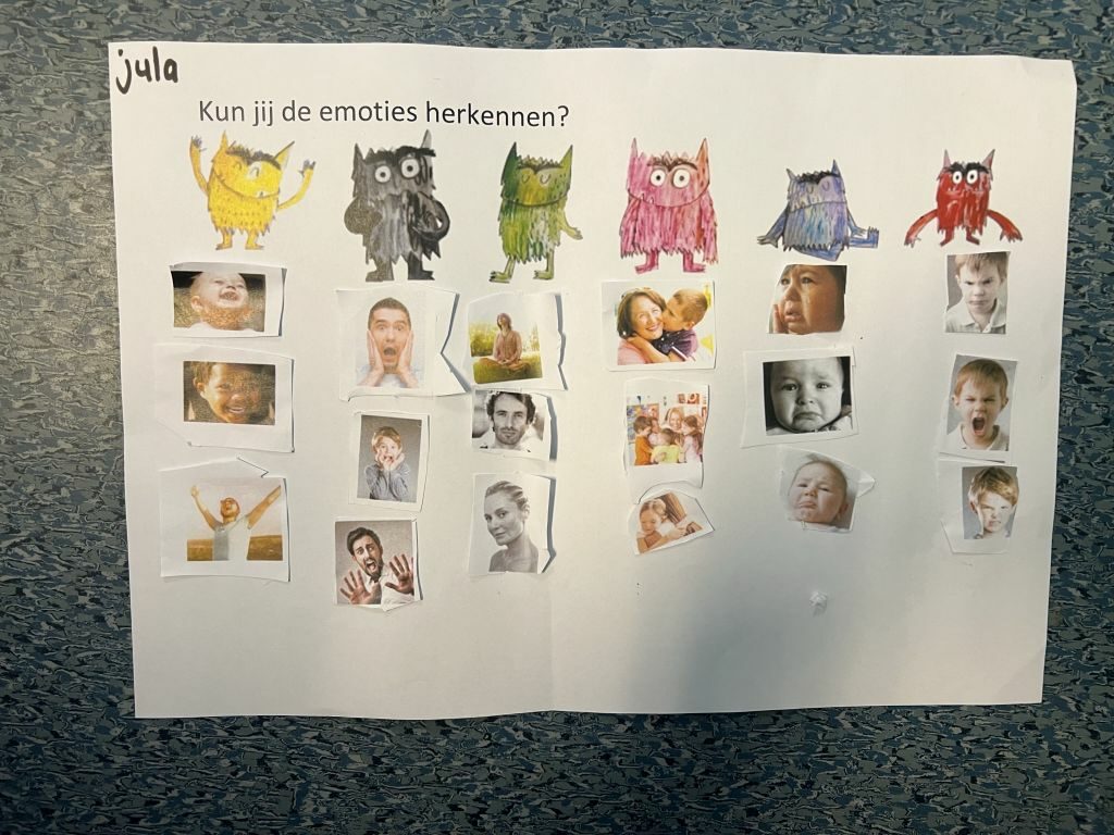 De kinderen knijpen de wasknijper met hun naam bij de emotie hoe zij zich voelen.