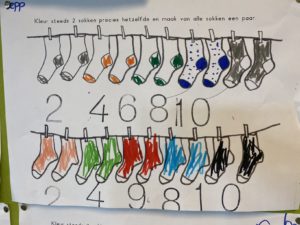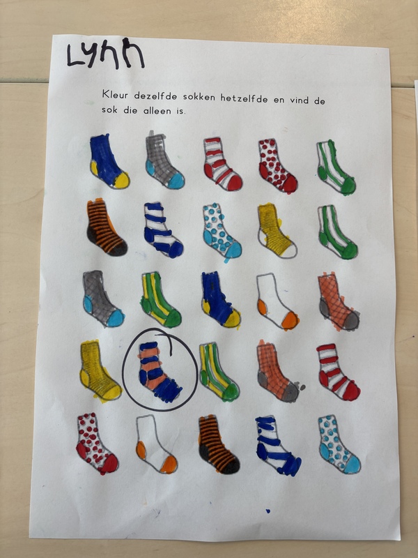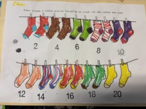 Kleur steeds 2 sokken precies hetzelfde en maak van alle sokken een paar.