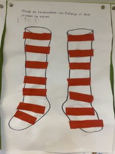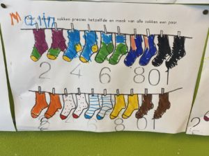 Kleur steeds 2 sokken precies hetzelfde en maak van alle sokken een paar.