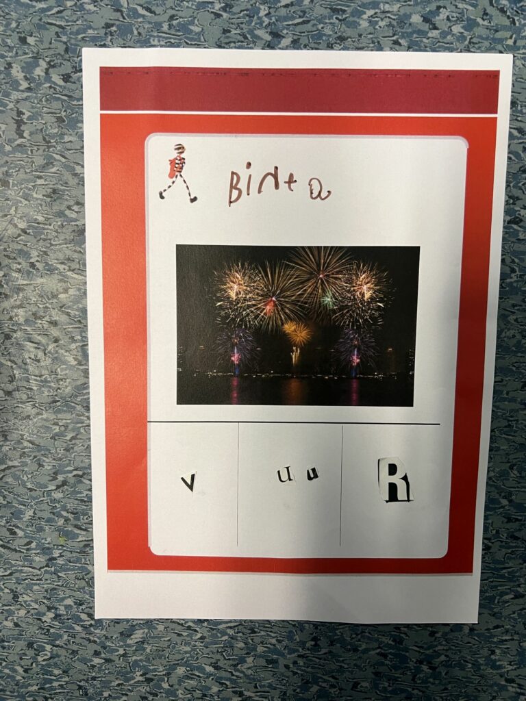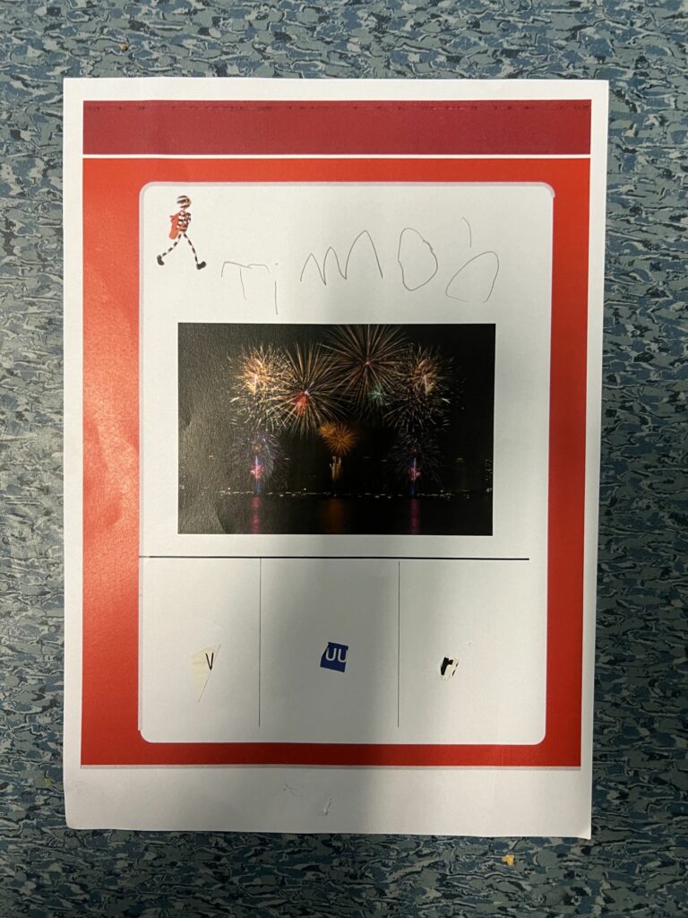 – Wat zeggen we altijd om 12.00 uur? (gelukkig nieuwjaar/de beste wensen)